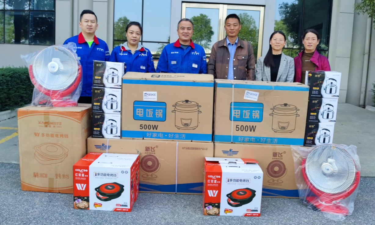 • 2022年10月18日,为助力公司所属黄庄社区“积分超市”建设,大力电工工会购置了电饭锅、热水壶、取暖器等日常生活用品向黄庄社区进行了爱心捐赠,为社区送去来自企业的一份温暖和关爱,受到黄庄社区领导同事的高度赞赏!
