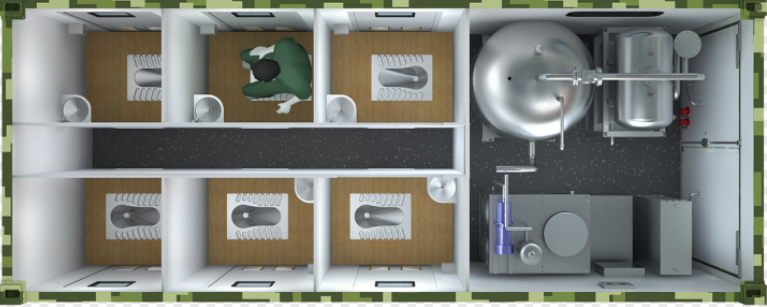机组式厕所的特点是:一套真空机组带若干不同数量的便池,组成一套系统。