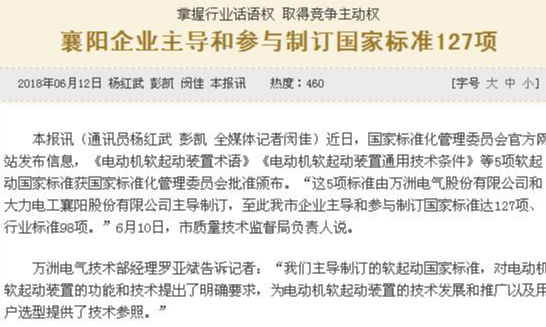 襄阳日报:大力电工襄阳股份有限公司获评“湖北名牌”