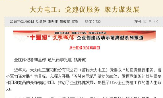 襄阳日报:大力电工 党建促服务 聚力谋发展