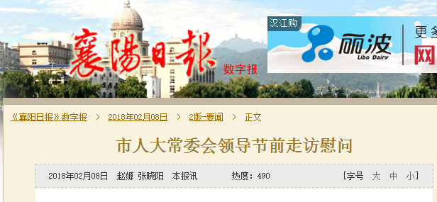 襄阳日报:人大常委会领导节前走访慰问