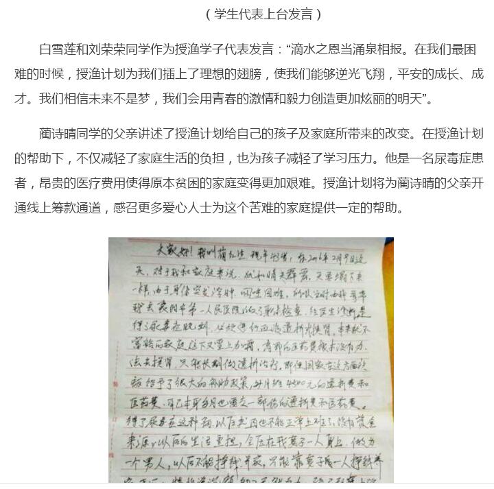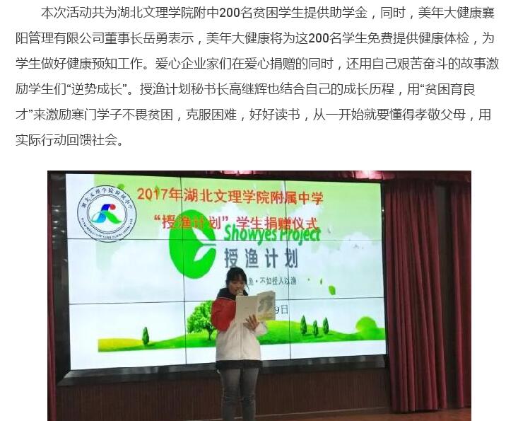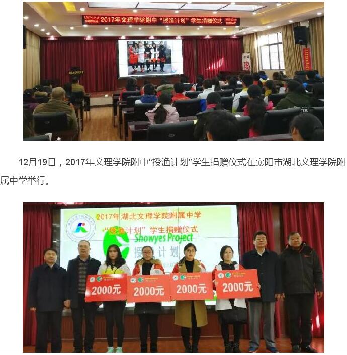 让爱成为前行的动力:2017年湖北文理学院附中授渔计划学生捐赠仪式举行