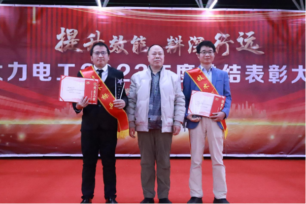 图为大力储能总经理史小虎与金牌工程师、高质量奖颁奖合影