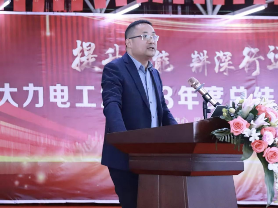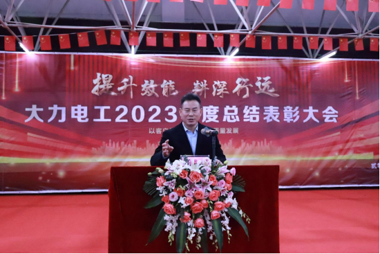 高总首先对大力电工全体获奖人员表示热烈祝贺。其次,从经营目标、产品质量、技术创新、安全生产、人才队伍、制度建设、社会责任及工作作风等八个方面对过去一年的工作进行点评总结,并对2024年工作做出安排部署。高总提出新的一年要以奋斗者为本,以客户为中心,用结果说话,号召大力人要发扬不怕苦不怕累的精神,共同为公司百亿百年的目标夯实基础。最后,高总代表公司对全体干部员工及家属致以诚挚的新年祝福!